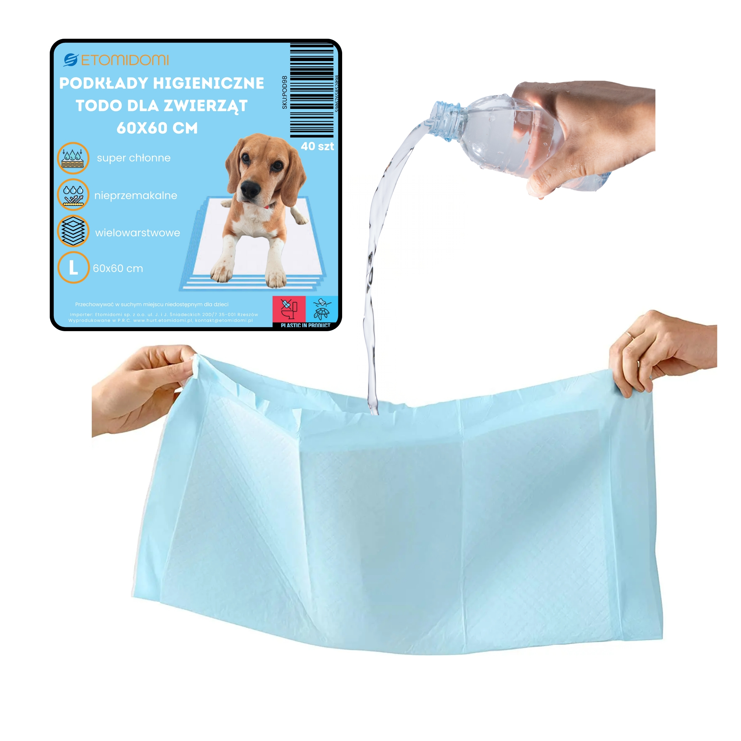 Zadbaj o higienę swojego pupila z podkładami TODO 60×60 cm – superchłonne, nieprzemakalne i idealne dla psów, kotów oraz szczeniąt podczas treningu czystości!